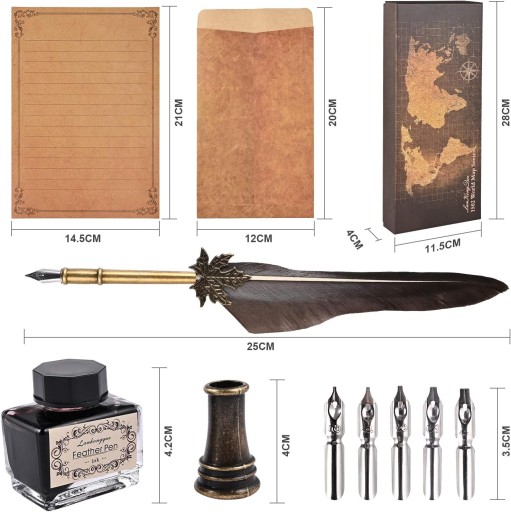 To pióro do kaligrafii wykonane z pióra, metalu i stali nierdzewnej emanuje niepowtarzalną elegancją i antycznym urokiem, który przyciąga wzrok.