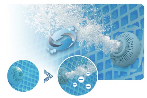 Intex wprowadził rewolucję w basenach ogrodowych - napowietrzanie wody podczas jej filtrowania, dostępna we wszystkich pompach tego producenta. Miliony bąbelków powietrza są wytwarzane przez pompę, czyniąc wodę łatwiejszą do czyszczenia i filtrowania.