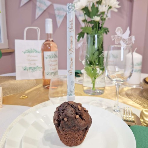 ❤️ Komunijna Fontanna tortowa została zaprojektowana, aby subtelnie ozdobić Twój tort i wywołać efekt WOW. Niniejsza raca tortowa długości 18 cm, w gustownym odcieniu bieli, posiada nadrukowane listki eukaliptusa oraz złoty napis Pierwsza Komunia Święta.