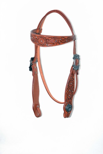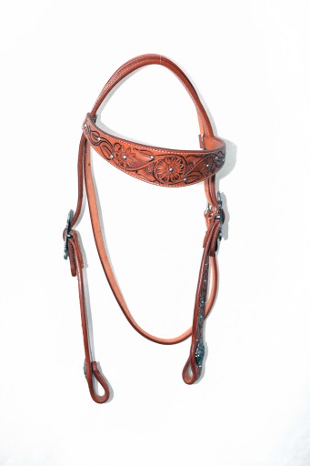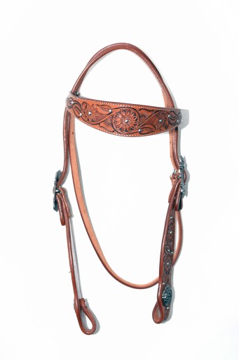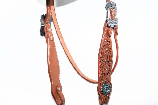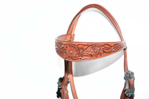 Ogłowie Western z USA roz. Full .Ogłowie wyprodukowane w zakładzie Rymarskim w USA .Wykonane z najwyższej jakości skóry bydlęcej bardzo miękkiej i miłej w dotyku produkowanej w Argentynie , część potyliczna i naczółek szyty z bardzo miękkiej skóry ,aby zapobiec obtarciom .Ogłowie zapinane i regulowane jest na stabilne sprzączki , wykonane z bardzo dobrej nierdzewnej stali szlachetnej . Zapraszam do zakupu.
