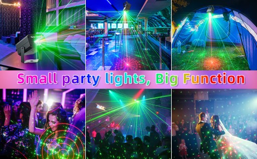 【Ekscytujące wrażenia świetlne】 Nowe światło laserowe wykorzystuje innowacyjną technologię wyświetlania wzorów i efektów świetlnych, umożliwiając wytworzenie ponad 100 trybów wzorów i 3 kombinacji wiązek (czerwony, zielony, czerwony i zielony).