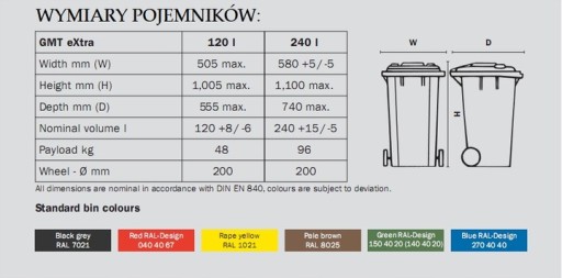 Odpowiednie do nowoczesnych i szybkich systemów opróżniania Dostępne w różnych pojemnościach od 120 do 240 l