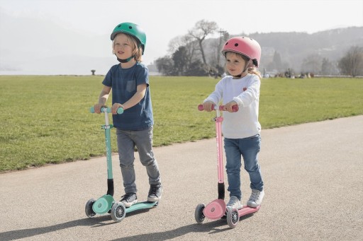 Regulowana, aluminiowa kierownica w kształcie litery T z 4 wysokościami (67,5 cm, 72,5 cm, 77,5 cm lub 82,5 cm) zapewnia dzieciom jeszcze dłuższą żywotność hulajnogi ponieważ rośnie razem z nimi i zostaje z nimi na dłużej!