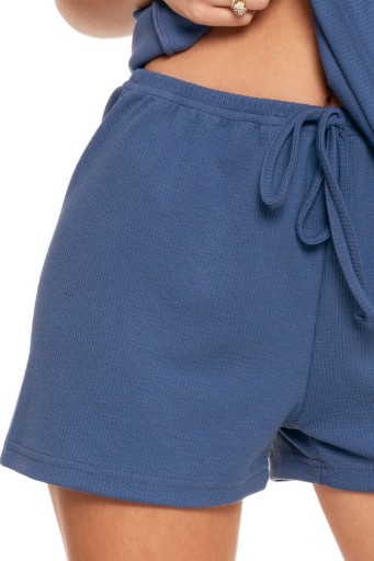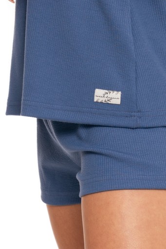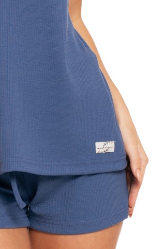 Elegancka i wygodna granatowa piżama damska na ramiączkach, wykonana z najwyższej jakości materiału wiskozowego z domieszką poliestru i elastanu, zapewnia niezrównany komfort noszenia. Materiał w prążek nie tylko dodaje uroku i subtelności, ale także gwarantuje doskonałą elastyczność, co sprawia, że piżama idealnie dopasowuje się do sylwetki, nie krępując ruchów podczas snu. Zestaw składa się z topu na cienkich ramiączkach oraz krótkich spodenek, które posiadają wygodną, elastyczną gumkę w pasie, zapewniającą komfortowe dopasowanie. Krój piżamy jest przemyślany tak, aby zapewnić maksymalną swobodę i komfort podczas cieplejszych nocy. To doskonała propozycja dla kobiet, które cenią sobie połączenie elegancji, komfortu i funkcjonalności w swojej nocnej garderobie.