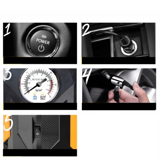 - Podłącz kompresor do gniazda zapalniczki