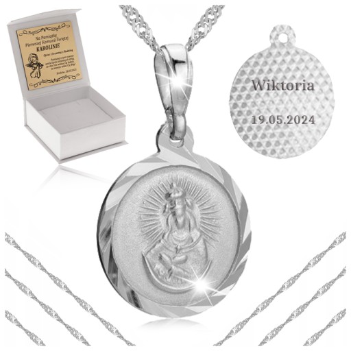 СЕРЕБРЯНАЯ ЦЕПЬ + МЕДАЛЬ 925 СУВЕНИР ПЕРВОГО СВЯТОГО ПРИЧАСТИЯ + БЕСПЛАТНЫЕ ПОДАРКИ 42СМ