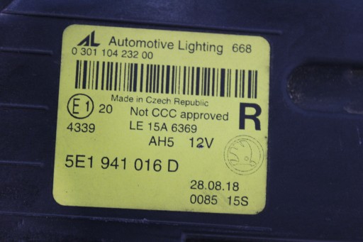 Przedmiotem sprzedaży jest : LAMPA PRAWA PRZÓD SKODA OCTAVIA 3 III LIFT FULL LED 5E1941016D