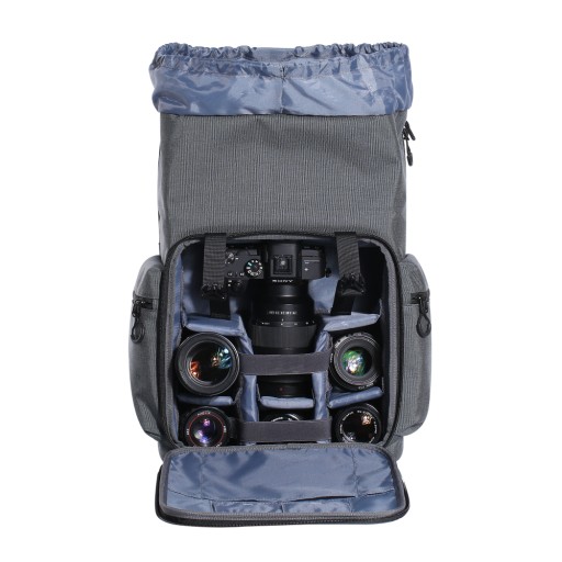 Dwukomorowy, pojemny plecak fotograficzny K&F Concept Shadow of the wind w kolorze szarym ułatwia transport sporej ilości sprzętu fotograficznego - jednego lub dwóch aparatów, obiektywów, lamp błyskowych, a także drona, kontrolerów czy innych akcesoriów. Solidna, wzmacniana konstrukcja oraz gładki materiał wyściełający wnętrze zapewniają pełne bezpieczeństwo nawet delikatnego sprzętu.