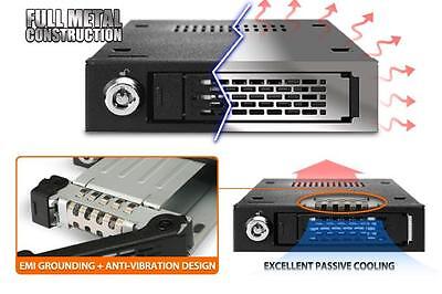 Przedstawiamy Icy Dock ToughArmor MB991SK-B 2,5 "SATA mobilne rozwiązanie RACK do użytku w zatokach 3,5". Jest to mniejsza obudowa urządzenia zbudowana specjalnie dla układów o małej przestrzeni do pracy. Korzystanie z metalowej konstrukcji o dużym obciążeniu, jest w stanie wytrzymać w najtrudniejszych środowiskach jakimi są np. przedsiębiorstwa. Napęd jest w pełni zabezpieczony przez nasze sprawdzone technologie, takie jak system blokady Eagle-Hook i 2-segmentowy klucz zabezpieczającego. Nasze w pełni metalowe suwaki EZ Mini Tray pozwalają na wymianę danych pomiędzy wieloma systemami z innymi produktami ToughArmor. Sugerowane zastosowanie w medycynie i systemach wojskowych oraz serwerowniach.