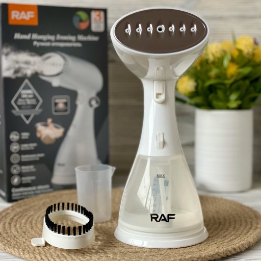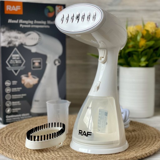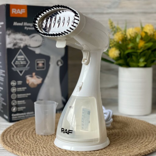 Zawartość opakowania: Parownica ręczna do ubrań RAF R.1214G; Szczotka do usuwania kłaczków; Kubek z miarką; Instrukcja obsługi po polsku; Opakowanie.