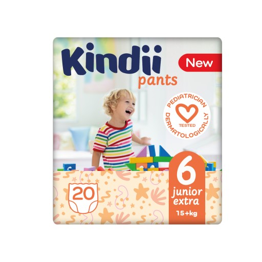 Kindii Pants zapewniają komfort i bezpieczeństwo Twojemu dziecku. Dzięki zastosowaniu innowacyjnych technologii, pieluszki są lekkie, miękkie, oddychające oraz nie podrażniają wrażliwej skóry malucha. Pieluchomajtki Kindii dostępne są w rozmiarach 4, 5, 6. Idealne do stosowania zarówno w dzień, jak i w nocy.
