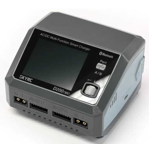 Ładowarka SKYRC D200neo 800W została zaprojektowana tak, aby zapewnić wszystko, co potrzebne do jednoczesnego ładowania dwóch akumulatorów wysokimi prądami "pod jednym dachem", w tym zasilanie sieciowe, z prostą obsługą i możliwością komunikacji z aplikacją SkyCharger. D200neo umożliwia ładowanie i rozładowywanie popularnych typów ogniw (NiCd, NiMH, Li-poly, Li-ion, Li-Fe, Li-HV, Pb), dodatkowo oba kanały są wyposażone we wbudowane sześciokanałowe balansery , które zapewniają bardzo bezpieczne i wygodne ładowanie akumulatorów litowych. Może również pracować w trybie ładowania równoległego, gdy oba kanały ładują jeden akumulator prądem 20-35 A. Po podłączeniu do zewnętrznej ładowarki BD350 umożliwia rozładowanie do 40 A przy maksymalnej mocy 350 W.
