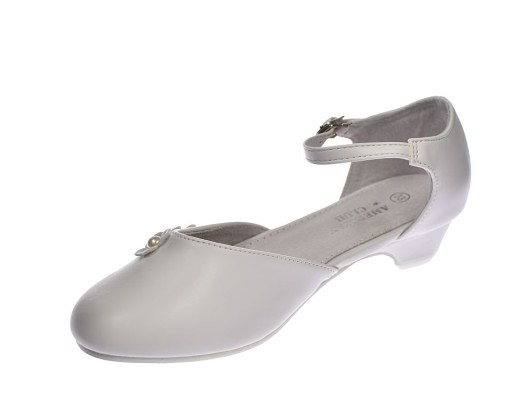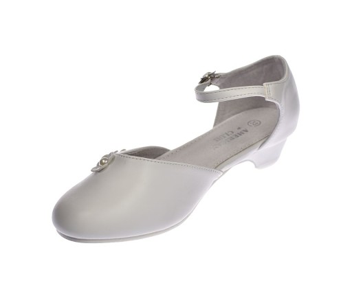 Buty komunijne białe balerinki dziewczęce białe na obcasie zapinane na pasek marki American Club