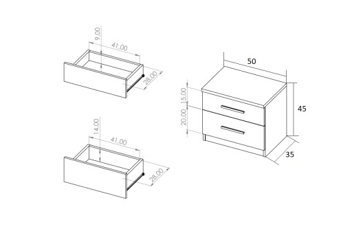 - szafka nocna Bono B-4: 50 cm / 45 cm / 35 cm - 2 szt
