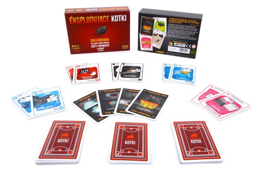 Dla kochających koty i wybuchyDo Polski zawitał największy bestseller gier oryginalnie wydanych przez kampanie crowdfundingowe. Gra, która jeszcze przed wydaniem stała się hitem. W czym tkwi tajemnica jej sukcesu? No cóż, jeśli nie wiadomo o co chodzi, to chodzi o koty :)Eksplodujące Kotki to napędzana kociakami odmiana rosyjskiej ruletki. Gracze ciągną co turę po karcie, aż do momentu dobrania eksplodującego kota - wtedy nieszczęśnik wybucha i ginie, a gra się kończy. Ale! W talii są też karty, dzięki którym można odwrócić uwagę samobójczego kocięcia, uniknąć go, czy też zmusić przeciwnika do dobrania kilku kart na raz.Gra z każdą upływającą kolejką staje się coraz bardziej intensywna - im mniej kart pozostaje w talii, tym większe prawdopodobieństwo wyciągnięcia morderczego futrzaka i wywołania wybuchu, po którym pozostanie tylko płonąca kulka kłaków.Jak grać?W talii znajduje się kilka eksplodujących kotków. Aby zagrać, połóżcie ją rewersami kart do góry i kolejno ciągnijcie karty do momentu, aż ktoś z Was dobierze eksplodującego kotka. Osoba, która na niego trafi – wybucha. I już do końca gry pozostaje martwa. Przy okazji możecie zagrywać różne karty odwracające uwagę eksplodujących kotków.Powtarzajcie tę czynność do momentu, aż w grze zostanie tylko 1 gracz. Ta osoba wygrywa grę. Im więcej kart pociągniesz, tym bardziej ryzykujesz, że trafisz na eksplodującego kotka.Eksplodujesz - przegrywaszI wypełnia Cię palący sos o smaku smutku.Nie eksplodujesz - wygrywaszI wypełnia cię wspaniałość, gratsy, serio.A pozostałe karty...zmniejszą ryzyko, że eksplodujesz wraz z eksplodującym kotkiem.