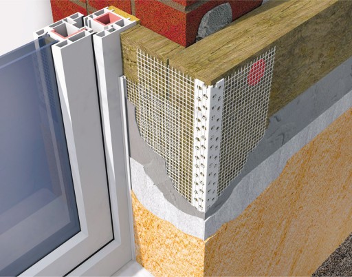 Narożnik z siatką wykorzystywany jest do wykonywania wykończenia i zabezpieczenia krawędzi elewacji. Pozwala dzięki temu wyprowadzić kąty docieplanego budynku.