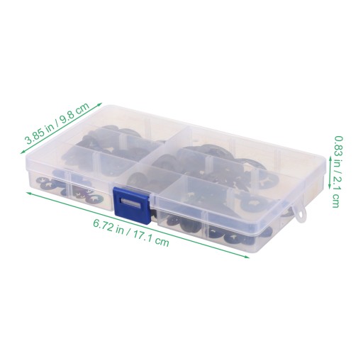 ✅7 rozmiarów łącznie 340 sztuk w przezroczystym pudełku, odpowiednich do różnych rozmiarów elementów złącznych.