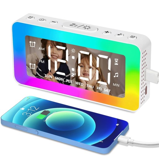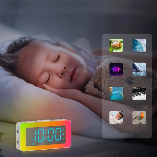 ✅Świetny prezent-ten kolorowy budzik jest naprawdę odpowiedni dla dzieci, chłopców, dziewcząt, mężczyzn, kobiet, nastolatków i osób starszych. Może pomóc mamie w karmieniu piersią w nocy, obudzić ciężko śpiącego ojca i sprawić, że starsza osoba szybko zaśnie. Jest to również wspaniały prezent na powrót do szkoły, który zapewnia im wystarczające bezpieczeństwo w ciemności w nocy i budzi się przy ulubionej muzyce, aby rozpocząć piękne dni
