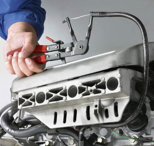 Szczypce do ściskania opasek rozprężnych stosowanych na elastycznych przewodach paliwowych, olejowych oraz wodnych. Dostosowane są do opasek w przedziale 18-54 cm. 5-stopniowy mechanizm blokujący. Specjalna konstrukcja pozwala na zacisk opasek w trudno dostępnych miejscach.