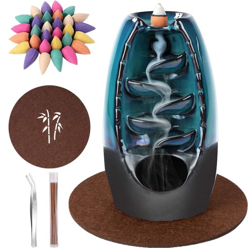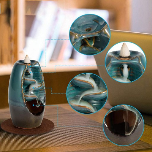 - Czas palenia każdego stożka kadzidła wynosi około 3 do 5 minut. Aby uzyskać wzmocniony efekt wodospadu, zaleca się użycie 2-3 kadzidełek kolejno. Należy pamiętać, że stożek kadzidła wykonany jest z przypraw i mączki drzewnej i po spaleniu może wydzielać zapach spalonego drewna. (Niezalecane dla osób, które nie czują się komfortowo w przypadku silnych zapachów lub osób wrażliwych na zapachy.)