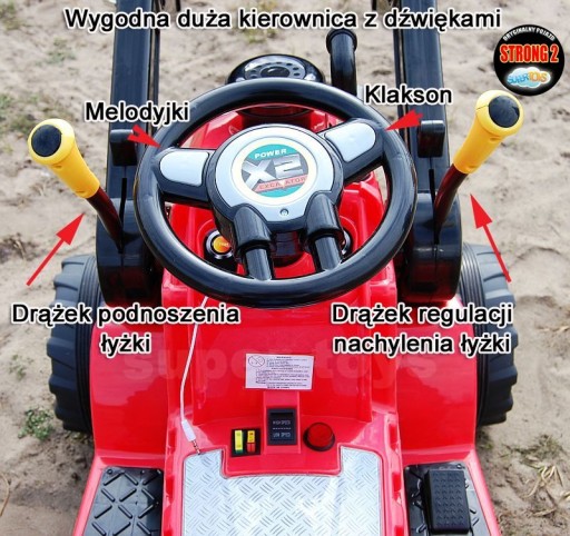 SUPER TRAKTOR - KOPARKA Z NAJMOCNIEJSZEJ I NAJLEPSZEJ WERSJI STRONG NA AKUMULATOR Z BARDZO SOLIDNĄ KONSTRUKCJĄ, DUŻYM AKUMULATOREM 12V, DWOMA SILNIKAMI 90W, 3 BIEGAMI, PODNOSZONĄ ŁYŻKĄ, ORAZ WYGODNYM SIEDZISKIEM DLA NASZEGO KIEROWCY !