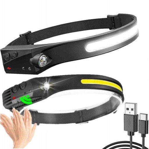 LATARKA CZOŁOWA LED USB OPASKA SENSOR AKUMULATOR