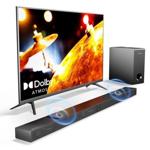 Seria ultracienkich listew dźwiękowych ULTIMEA: Wymiary listwy dźwiękowej do 31,5" dł. x 3,5" szer. x 1,5" wys. Ten stylowy, dyskretny soundbar do telewizora ma 2 cale wysokości i można go łatwo udostępnić pod siecią, aby uwolnić wykorzystanie przestrzeni. 5,25 -wysoki subwoofer wykorzystujący możliwość renderowania basów Dolby Atmos, pogłębia pasmo przenoszenia szerokiej częstotliwości, rozszerzona scena dźwiękowa i zapewnia większy efekt basów.