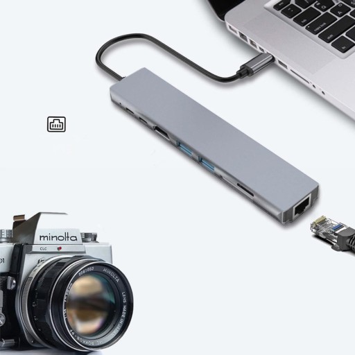STACJA DOKUJĄCA ADAPTER 8W1 Z 4K HDMI TYPC 100W PD PORT USBC 3.0 CZYTNIK KART SD/TF