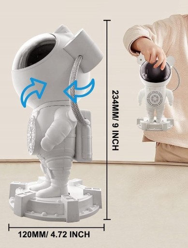 Rzutnik gwiazd przypomina swoją budową sylwetkę astronauty, więc dzięki niemu wczujesz się w temat gwiazd i kosmosu w każdym calu. Projektor gwiazd wyposażony jest w głośnik, a także w tryb Bluetooth, co pozwala Ci odtwarzać za jego pomocą ulubioną muzykę.