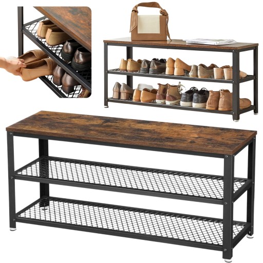 RUSTYKALNA SZAFKA REGAŁ NA BUTY Z SIEDZISKIEM ŁAWA PÓŁKA METALOWA CZARNA LOFT