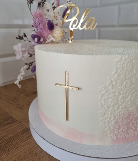 Topper dekor na bok tortu na komunie KRZYŻ złoty