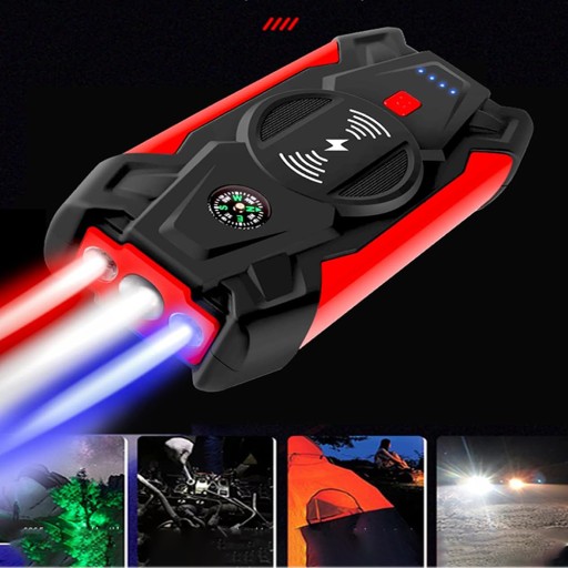 🌟Może być używany jako awaryjny zasilacz rozruchowy dla pojazdów z silnikiem Diesla i benzyną 12 V, a także obsługuje bezprzewodowe ładowanie telefonów komórkowych.