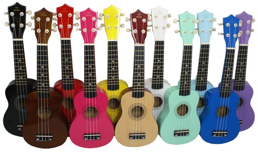 Oferujemy ok. 14 różnych kolorów. Po zakupie prosimy o wybór i informację który mamy wysłać. Listę aktualnie dostępnych kolorów znajdziesz na miniaturkach. Uwaga: jasne zdjęcia bez podpisów oznaczają brak prezentowanego ukulele.