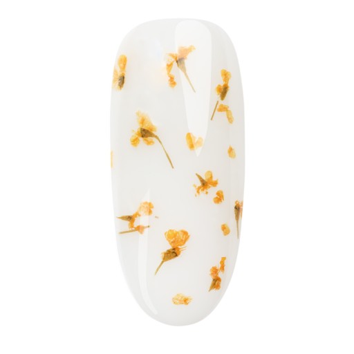 Należy jedynie sięgnąć po drobne, suszone kwiaty, które wystarczy zatopić w przezroczystym żelu lub lakierze hybrydowym. Dzięki temu zdobienie nada stylizacji dziewczęcego, modnego charakteru. Sięgnij po pomarańczowe, suszone kwiaty 03 Orange, a przygotujesz wiele efektownych zdobień w kilka chwil!
