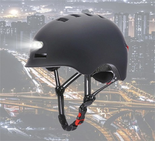 ВЕЛОСИПЕДНЫЙ ШЛЕМ СО СВЕТОДИОДАМИ ЛЕГКИЙ РЕГУЛИРУЕМЫЙ черный 58-61см USB