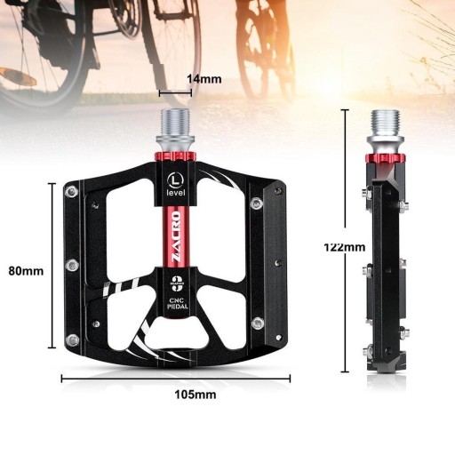 2 противоскользящие велосипедные педали из алюминия, 122x105x14 мм, 3 подшипника