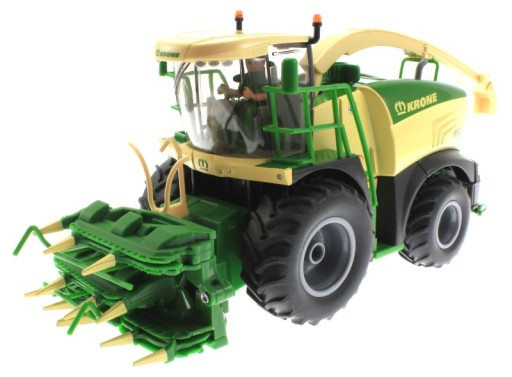 Opis: Moc 580 KM i szeroki zakres funkcji sprawiają, że ta nowa i kompaktowa sieczkarnia firmy Krone jest potężną maszyną w gospodarstwie tworzonym w pokoju dziecięcym. Dzięki typowemu sterowaniu SIKU maszynę można prowadzić precyzyjnie i dokładnie po śladzie. Otwierane trzy klapy pozwalają odsłonić ogromny silnik. Wyjątkową atrakcją jest szczegółowe przedstawienie mechanizmu składania hedera do kukurydzy. Po złożeniu przycisku rzędu i „kratki” składa się on dwa razy na sobie, co pozwala zaoszczędzić miejsce. Obrotowa rura wyrzutowa uzupełnia ten wiernie odwzorowany model.