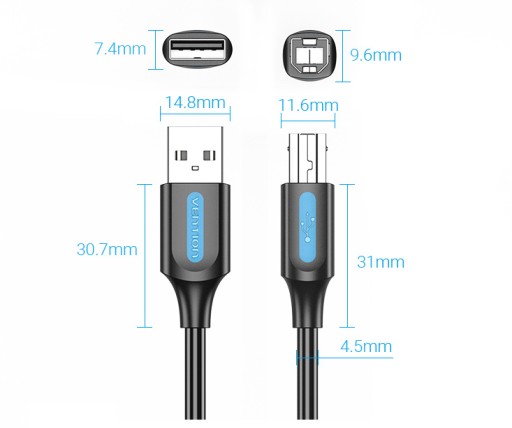 Przeznaczony do pracy z drukarkami, faxami i kserokopiarkami kabel Vention zapewnia stabilną transmisję bez opóźnień. Wyróżnia się solidną konstrukcją, dzięki której jest tak wydajny! Ergonomiczny kształt sprawia, że końce kabla są odporne na zginanie, a niklowane złącza bez trudu zniosą wiele cykli wpięć i wypięć.