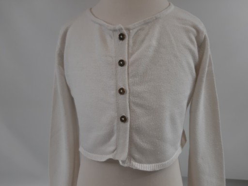 W sprzedaży jest bolerko dzianinowe marki C&A, rozmiar 122/128, 7-8 lat, używane, ich stan oceniam na dobry.