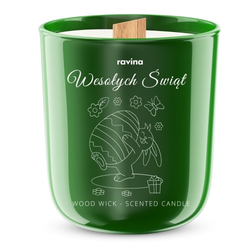 Abyś mógł podarować wyjątkowy niepowtarzalnie pięknie pachnący prezent Wielkanocny stworzyliśmy sojową świecę zapachową marki RAVINA z napisem w delikatnie ozdobnej formie Happy Easter
