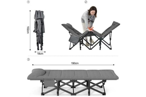 Składana konstrukcja łóżka jest lekka i bardzo prosta w składaniu i rozkładaniu, zajmuje niewiele miejsca, dzięki czemu jest łatwa w transporcie i przechowywaniu.