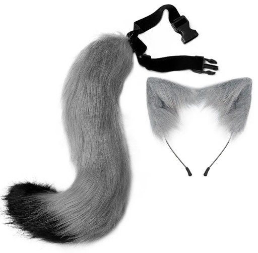 МЕХОВОЙ КОМПЛЕКТ - ХВОСТОВЫЕ УШИ WOLF PAPS - НАряд КОСТЮМА ВОЛКА