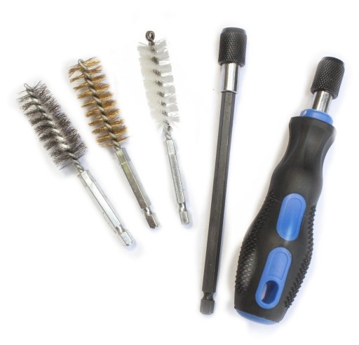 Zestaw szczotek do czyszczenia gniazd wtryskiwaczy oraz gniazd świec żarowych i iskrowych. W skład zestawu wchodzi komplet 18 szczotek o różnej twardości i średnicy oraz uchwyt wraz z przedłużką. Wszystkie szczotki z napędem 1/4” dzięki czemu z powodzeniem mogą być używane z wkrętarkami i wiertarkami.