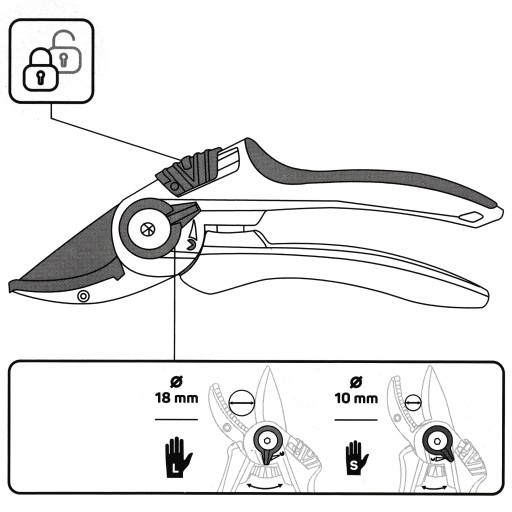 Szybka i łatwa blokada ostrzy umożliwia bezpieczny transport i przechowywanie sekatora.