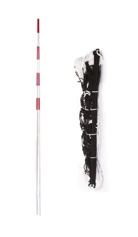 Wymiar siatki 9,5 x 1 metr, górna linka stalowa o długości 11,70 m, dolna polipropylenowa.