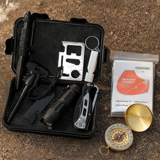 - Ten wysokiej jakości zestaw zawiera wszystko, co potrzebne, aby przetrwać w dziczy. W skład zestawu wchodzą takie elementy, jak noże, latarki, kompas, zapalniczki, zestaw do rozpalania ognia, pierścienie mocujące, wodoodporne opakowanie, a także instrukcja obsługi i porady dotyczące przetrwania w trudnych warunkach.