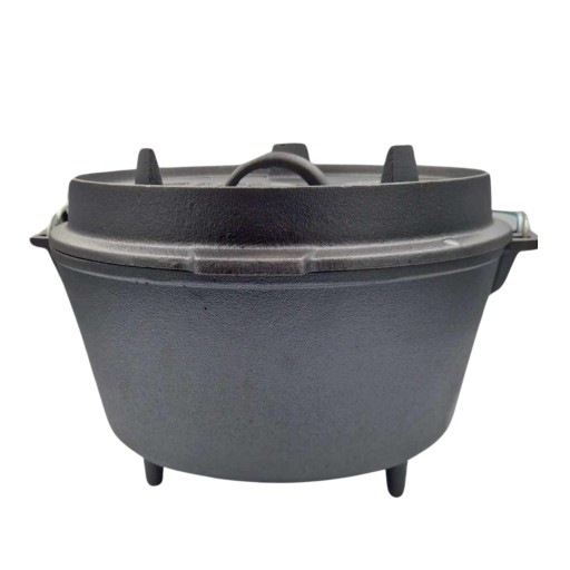 Kociołki żeliwne charakteryzujące się nóżkami zarówno w podstawie, jak i na pokrywie, zapewniają stabilność podczas gotowania na różnorodnych powierzchniach.