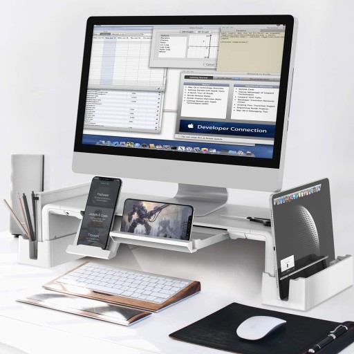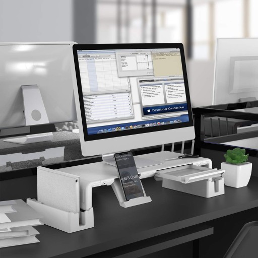 РЕГУЛИРУЕМАЯ ПОДСТАВКА ДЛЯ МОНИТОРА, БЕЛАЯ + 2 ПОДСТАВКИ ДЛЯ ХРАНЕНИЯ
