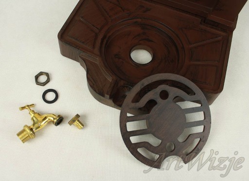 W zestawie znajduje się mosiężny kran wkręcany do rury (przyłącza) w ścianie.
