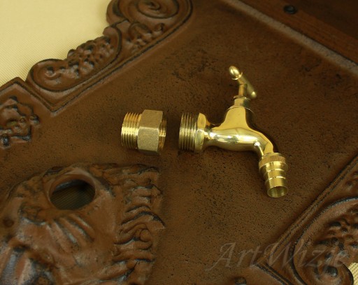 W zestawie ze zlewem mosiężny kran o gwincie 3/4 cal służący do wkręcenia we wcześniej przygotowane przyłącze.